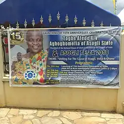 Banner in Ho advertising the Asogli Te Za 2018 featuring Togbe Afede XIV