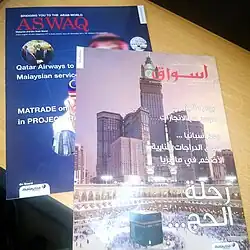 ASWAQ is an Arabic magazine in Malaysia. The magazine is one of few Arabic magazines in the country, which is based in Kuala Lumpur. It covers all types of Malaysian business sectors and events, but focuses on tourism, education, investment, and trade related events, places, and organizations. It targets Arabic travellers to Malaysia specially those coming from Gulf Countries.[1][2]