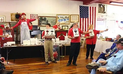 By the end of the 18th century, auctions of art works were commonly held in taverns and coffeehouses. These auctions were held daily, and auction catalogs were printed to announce available items. In some cases, these catalogs were elaborate works of art themselves, containing considerable detail about the items being auctioned. At the time, Christie's established a reputation as a leading auction house, taking advantage of London's status as the major centre of the international art trade after the French Revolution. The Great Slave Auction took place in 1859 and is recorded as the second largest single sale of enslaved people in U.S. history — with 436 men, women and children being sold.[19] During the American Civil War, goods seized by armies were sold at auction by the Colonel of the division. Thus, some of today's auctioneers in the U.S. carry the unofficial title of "colonel".[8] Tobacco auctioneers in the southern United States in the late 19th century had a style that mixed traditions of 17th century England with chants of slaves from Africa.[20]