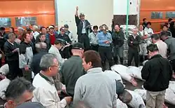 Wool buyers' room at a wool auction, Newcastle, NSW