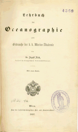 2. ^ August Jilek, Lehrbuch der Oceanographie zum Gebrauche der k. k. Marine-Akademie, Vienna: Imperial-Royal Court and Government Printer, 1857, 298 pp.