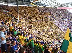 The first match between the two teams was played at the 1956 Olympics, ending in a 2–0 win for the Australians.[3] Another dozen matches were played between Australia and Japan until a semi-final match at the 2001 Confederations Cup which ended in a 1–0 for Japan, but the match-up only emerged as a rivalry after 2006, when Australia joined the AFC, especially the FIFA World Cup qualification games. The first match between the two sides after this was during the 2006 FIFA World Cup, a group stage game where Australia was still technically competing as Oceania representatives. With just six minutes left, Japan led by a single goal, only for Australia to score thrice in succession to secure their first-ever win in a World Cup finals match in what is regarded as one of the greatest moments in Australian sporting history.[4]