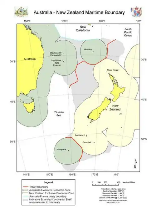The Australia–New Zealand Maritime Treaty is a 2004 treaty between Australia and New Zealand in which the two countries formally delimited the maritime boundary between the two countries.[1]