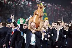 - Kurt Fearnley, a wheelchair racer, winning the marathon for the second time.[1]