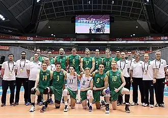The Australia men's national volleyball team, also known as Volleyball Team Australia Men (VTAM) or the Volleyroos, is the national volleyball team of the volleyball-playing nation of Australia. As of September 2021, they are ranked 28th in the world.[2] They are a member of the Asian Volleyball Confederation (AVC). Their best result came in 2007, when they won the Asian Men's Volleyball Championship.