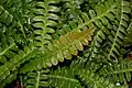 It has wiry rhizomes and exhibits strong dimorphism in its fronds.[4] The sterile fronds are prostrate or semi-erect, growing up to 400 mm in length, while the fertile fronds are longer and held erect.[4] The sterile fronds have a yellow-brown stem, while the fertile fronds have a purplish-black stipe. Both types of fronds have pinnatisect laminae with free veins.[4] The sterile fronds have 12–44 pairs of triangular or oblong pinnae, while the fertile fronds have 10–36 pairs of linear to narrowly oblong pinnae, which are replaced by tiny sterile flanges at the base.[4]