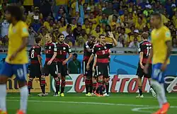 At the 2014 World Cup, Croatia were allowed to wear red-and-white checked shirts, instead of blue, against Brazil, only after Croatia appealed FIFA's original decision.[45] England were not allowed to wear red away shirts, and instead were made to wear white against Uruguay, due to an apparent clash with officials' uniforms.[46]