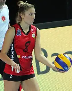 Ayşe Melis Gürkaynak (born April 20, 1990) is a Turkish volleyball player. She is 184 cm (6.04 ft) tall and plays as a middle-blocker. She plays for Vakıfbank Spor Kulübü and wears the number 8.[1]