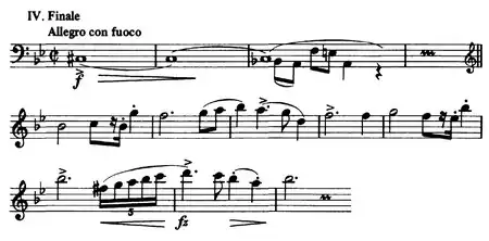- Finale: Allegro con fuoco in B-flat major, 570 measures