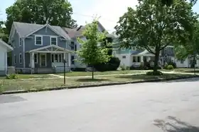 The B Avenue NE Historic District is a nationally recognized historic district located in Cedar Rapids, Iowa, United States. It was listed on the National Register of Historic Places in 2013.[1] At the time of its nomination it consisted of 210 resources, which included 167 contributing buildings, and 43 non-contributing buildings.[2] This is a working and middle-class neighborhood northeast of the campus of Coe College. It includes single-family dwellings, a church, and a school. The buildings are representative of various architectural styles and vernacular building forms popular from c. 1875 to 1963. The oldest house was built in 1873 and moved here in the early 20th century. Bungalow, Craftsman, and American Foursquare houses are dominant.[2] A simple side-tower church, originally Central Park Presbyterian Church, was built in 1904. For the most part, architect-designed buildings are a rarity here. The houses are designs from pattern books. Cedar Rapids architect William J. Brown designed Benjamin Franklin Junior High School (1923).