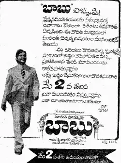 Babu is a 1975 Indian Telugu-language drama film written by K. S. Prakash Rao and directed by K. Raghavendra Rao. The film stars Sobhan Babu, Vanisri and Lakshmi in key roles.