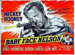 Baby Face Nelson is a 1957 American film noir crime film based on the real-life 1930s gangster, directed by Don Siegel, co-written by Daniel Mainwaring—who also wrote the screenplay for Siegel's 1956 sci-fi thriller Invasion of the Body Snatchers—and starring Mickey Rooney, Carolyn Jones, Cedric Hardwicke, Leo Gordon as Dillinger, Anthony Caruso, Jack Elam, John Hoyt and Elisha Cook Jr.