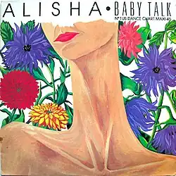 "Baby Talk" was written by singer-songwriter Gregg Brown and Logankoya. It was originally a single performed by Brown, released in the UK in 1984 on Beau-Jolly Records.[1] Alisha's version was produced by Mark S. Berry and released on September 27, 1985 as the third single from her debut studio album Alisha by Vanguard Records. "Baby Talk" became Alisha's most successful single to date, reaching No. 1 on the Billboard Hot Dance charts in the final week of December 1985.[2] The single crossed over to the Hot 100 charts reaching No. 68 in February 1986,[3] and on the Hot Black Singles chart, peaking at No. 75. It was also released in the UK on Total Control Records,[4] and reached No. 67 on the UK Singles Chart.