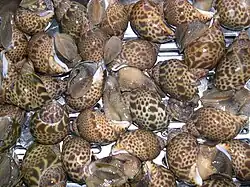 Babylonia japonica for sale at a fishmarket in Japan.
