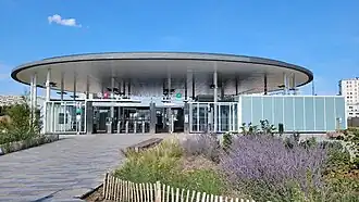 Bagneux–Lucie Aubrac (French pronunciation: [baɲø lysi obʁak]) is a Paris Métro station in Bagneux, Hauts-de-Seine. It is the southern terminus of Line 4, and was built as part of a two-station southward extension from Mairie de Montrouge, the previous terminus of the line.[1] The adjacent station is Barbara. The station opened in January 2022.[2] In future, the station will be served by Paris Métro Line 15.