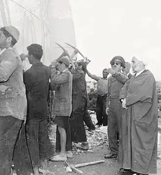 With national and army radio stations put at his disposal, the preacher fueled a wave of anti-Baháʼí violence across the country; and the Pahlavi regime even assured parliament it had ordered the suppression of all activities of "the Baháʼí sect".[85] Due to this cleric's provocations, the government confiscated Baháʼí properties in cities around the country. In Tehran, in front of foreign and domestic reporters with cameras, the cleric, accompanied by the Shah's army chief, proceeded to personally participate in demolishing the distinctive dome of Iran's national Baháʼí headquarters with pickaxes.[86] As news spread abroad of how anti-Baháʼí propaganda was resulting in growing numbers of murders, rapes and robberies against members of the Baháʼí Faith, a chorus of international condemnation was raised against Iran for allowing such abuse of Baháʼís' human rights. This led the Shah, who was very conscious of such foreign criticism, to finally break with the clerics and rein in what was happening.[87]