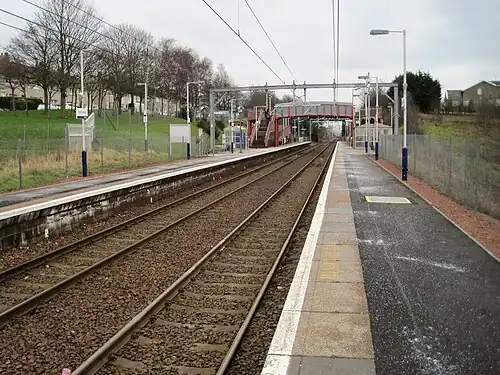 Sunday services formerly only ran for the month prior to Christmas and were extended to Shotts, but since the December 2014 timetable change and the start of EMU operation now run hourly each way all day throughout the year (to Balloch and Motherwell).[1] Several freight trains also pass the halt every day.