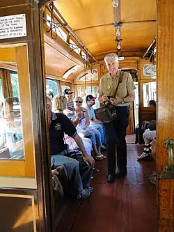 • Number 1: built 1887, one of 18 horse trams built by Duncan & Fraser of Adelaide for the Ballarat Tramway Company.[7] This tram has been almost totally rebuilt after being recovered in 1985. It was put back into service in 1992 and is used several times each year using horses.