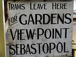• Number 21: built in 1913 in Ballarat for Electric Supply Company of Victoria. The style was known as the "Sebastopol" tram. Sold in 1935 for use in a house near Daylesford, and returned to Ballarat in 1994.[15] This tram is in poor condition and suitable only for parts. It is currently in storage offsite.