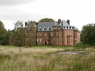 Ballochmyle House was designed by Robert Adam and completed in 1760 before being substantially rebuilt to a design by Hew Montgomerie Wardrop with assistance from George Mackie Watson in 1887.[4] It was the home of Wilhelmina Alexander whose lasting fame derives from being Robert Burns's 'The Bonnie Lass o'Ballochmyle' in the song of that title.[5]
