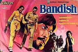 Bandish (aka Bandhish) (lit.'Restriction') is a 1980 Hindi-language film directed by K. Bapaiah, starring Rajesh Khanna, Hema Malini and Danny Denzongpa.[1][2] The movie is a commercial attempt by D. Rama Naidu, who had earlier produced Prem Nagar with the same lead pair on 1974. The music is by Laxmikant–Pyarelal. The film was the 8th highest grosser of the year. The film was appreciated for its colorful locations and sets, and for its melodious songs and unique story. The film was a remake of the Telugu film Chilipi Krishnudu.
