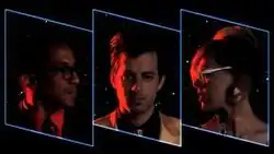 The music video for "Bang Bang Bang", featuring (from left to right) Q-Tip, Mark Ronson, and Amanda Warner.