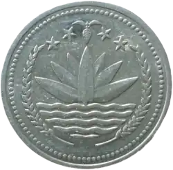 The Bangladeshi decimal fifty-poysha coin (Bengali: পঞ্চাশ পয়সা) was first minted in 1973.[1] It is a small denomination of Bangladeshi monetary unit which is the taka.[2] It equals one half of a taka.