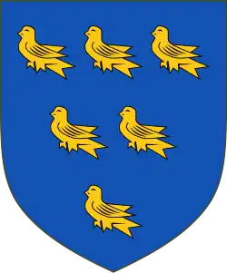 - ^ Puttock, A.G. (1985). A Dictionary of Heraldry. Exeter: Blaketon Hall Ltd. p. 196. ISBN 0-907854-93-1.