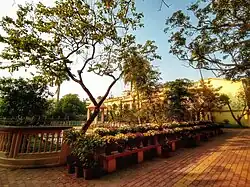 Ashrama has a large and green campus. It contains a primary school section, secondary and higher secondary school section, libraries, three free coaching centres, a charitable homeopathic dispensary, a mobile medical unit, prayer hall, a temple, monk's quarters and playgrounds.[3] A fibreglass relievo (17 ft x 22 ft) of Sri Ramakrishna's Monastic Disciples was inaugurated in Ramakrishna Mission Baranagar by Revered Swami Shivamayananda ji Maharaj on 15 March 2021.[24] On 6 October 2023, the showroom-cum-sales Counter at Ramakrishna Mission Ashrama, Baranagar was inaugurated by Swami Suvirananda ji, General Secretary, Ramakrishna Math and Ramakrishna Mission.[25]