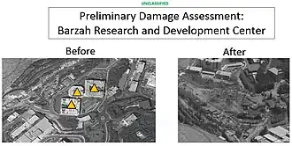 The Barzah scientific research centre, also known as the Barzah Scientific Research Facility[1] or Institute 2000 was a facility of the Syrian Scientific Studies and Research Center (SSRC or CERS) located in Barzeh, Damascus. Several buildings at the centre alleged to be associated with a Syrian chemical weapons programme were destroyed during the 2018 missile strikes against Syria during the Syrian Civil War. Other buildings within the larger complex were undamaged.[2]