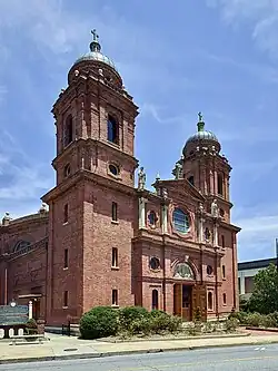 The Minor Basilica of St. Lawrence the Deacon & Martyr is a minor basilica of the Catholic Church in downtown Asheville, North Carolina, United States. The church was designed and built in 1905 by Spanish architect Rafael Guastavino along with his fellow architect R. S. Smith and the Catholic community of Asheville.[1] Pope John Paul II elevated the status of the church to minor basilica in 1993. It is a parish church, located within the Diocese of Charlotte. It is on the National Register of Historic Places and is the only basilica in western North Carolina. Its dome, inspired by the Royal Basilica of Our Lady of the Forsaken of Valencia, has a span of 58 by 82 feet (18 by 25 m), and is reputed to be the largest, freestanding, elliptical dome in North America. The architectural style is Spanish Renaissance.[2][3]