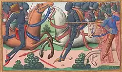 The Battle of Bulgnéville was fought on 2 July 1431.[1] The battle was fought between two cousins, René I d'Anjou and Antoine de Vaudémont, over partition of the Duchy of Lorraine after the death of Duke Charles II. Although René was defeated and captured, the result was reversed by diplomatic means in the years following.