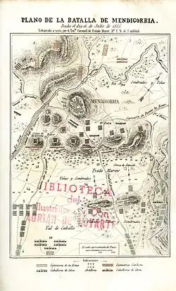 The Battle of Mendigorría Grand took place during the First Carlist War on July 16, 1835 south of Mendigorría, Navarre. The Carlists were commanded by Vicente González Moreno, who assumed this post after the death of Zumalacárregui at the Siege of Bilbao. The Carlist pretender Don Carlos was also at Mendigorría.