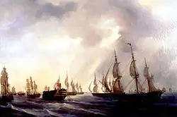 Vice-Admiral Pierre-Charles Villeneuve had taken command of the French Mediterranean fleet following the death of Latouche Treville. There had been more competent officers, but they had either been employed elsewhere or had fallen from Napoleon's favour.[13] Villeneuve had shown a distinct reluctance for facing Nelson and the Royal Navy after the French defeat at the Battle of the Nile in 1798.[14]