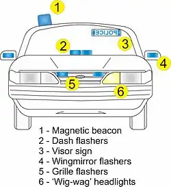 The color of the lamps varies by jurisdiction; typical colors are blue and/or red for police, fire, and medical-emergency vehicles; amber for hazards (slow-moving vehicles, wide loads, tow trucks, security personnel, construction vehicles, etc.); green for volunteer firefighters or for medical personnel, and violet for funerary vehicles. Beacons may be constructed with halogen bulbs similar to those used in vehicle headlamps, xenon flashtubes, or LEDs.[21] Incandescent and xenon light sources require the vehicle's engine to continue running to ensure that the battery is not depleted when the lights are used for a prolonged period. The low power consumption of LEDs allows the vehicle's engine to remain turned off while the lights operate.