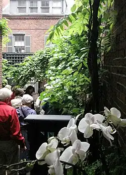 Since 1929, the club has organized an annual behind-the-scenes tour of selected private gardens in Beacon Hill.[4] "They say if you can garden on Beacon Hill, you can garden anywhere in Boston. With more shade than sun, with soil that is laced with brick dust (from the old paved laundry yards), with imperious tree roots that heave up brickwork, it's a challenge to make a hidden garden something worth showing the public."[5]