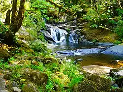 Beaver Creek Falls is a small waterfall located at the confluence of Beaver and Sweet Creeks in Lane County, in the U.S. state of Oregon. The waterfall is known for joining of the two creeks becoming one intertwined waterfall.[1]