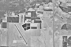 Asphalt (dark black) runway and dirt (white) runway on left. USGS image (1999).