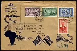 Bechuanaland postage stamps were issued from 1888 to 1966. Overprinted stamps were issued until 1932, when the first stamps inscribed "Bechuanaland Protectorate" were issued. On 14 February 1961 the South African rand was introduced, necessitating the surcharging of the existing definitive stamps until new ones were issued.