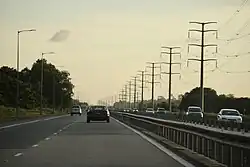 The Rasau Bridge connects the district to Sungai Tujoh and Miri in Sarawak, Malaysia to the west, while the Seria/Lumut bypass connects it to the Muara–Tutong Highway to the east. By coastal highways, it takes over an hour to get from Bandar Seri Begawan to Belait District.[28] As of 2022, the district's road network consisted of 923.16 kilometres (573.63 mi), out of which 90.8% were paved.[29]