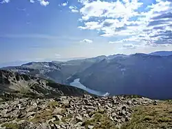 Beli Iskar Reservoir (Bulgarian: Язовир Бели Искър) is a small dam and reservoir in western Bulgaria, situated near the southern foothills of the Balkans' highest summit Musala (2,925 m) in the Rila mountain range. It is built on the homonymous river, one of the two main stems of the Iskar. Administratively, the reservoir is located in the territory of the village of Beli Iskar in Samokov Municipality of Sofia Province. Lying some 75 km south of the national capital Sofia, the reservoir provides about 20% of the city's potable water supply, serving as a complementary volume to the main water source, the Iskar Reservoir. It is among the highest altitude reservoirs in Europe and is among the oldest ones in Bulgaria, constructed between 1935 and 1945.[1][2]
