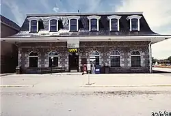 Built from bluish-grey Trenton limestone in 1856 by Thomas Brassey for Canadian National Railway predecessor Grand Trunk Railway, the station was designated a National Historic Site of Canada in 1973[1][2] and protected under the Heritage Railway Stations Protection Act since 1992.[3]
