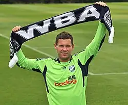 Foster joined Premier League club West Bromwich Albion on 29 July 2011, changing places with Albion goalkeeper Boaz Myhill, both players signing a loan deal for the whole of the 2011–12 season.[68] Foster played in 37 of their 38 league matches, only missing the final match of the season with a minor groin strain. He kept 10 league clean sheets, equalling West Brom's Premier League clean sheets record, as the club finished in 10th place, their highest league finish in 30 years.[69] At the end of the season, Foster was given the supporters' player of the year and the players' player of the year awards.[70]
