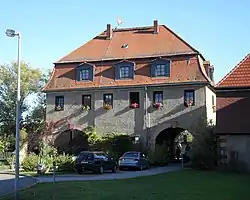 Until the dissolution of the Voluntary Fire Brigade the Benndorf fire engine was parked here in the gatehouse and housed the equipment for the comrades. In 2012 the building changed from municipal to private ownership[12]