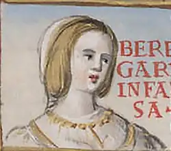 Berengaria of Castile (Seville, 1253 – Guadalajara, 1300), Infanta of Castile and Lady of Guadalajara in her own right. She was the eldest child of King Alfonso X of Castile and Violante of Aragon. She was probably named after her paternal great-grandmother, Queen Berengaria of Castile.