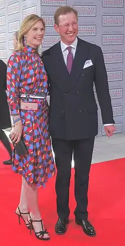On 29 December 2022, his father, Maximilian, died and Bernhard became head of the former grand ducal house of Baden.[1] Though royal and noble titles were abolished in Germany in 1919 when the Weimar Republic was proclaimed, he is sometimes styled and titled His Royal Highness The Margrave of Baden, Duke of Zähringen, by courtesy.[12][13] Prior to this, he was styled and titled His Grand Ducal Highness Hereditary Prince of Baden. Legally in Germany, these titles form part of his surname.