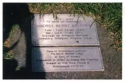Balchen continued to work in consultancy until his death. In his final year, he was diagnosed with bone cancer, and he died at Mount Kisco, New York in 1973.[34] Balchen was buried at the Arlington National Cemetery in Virginia.[35] He is buried in Section 2, Grave 4969, next to Admiral Richard E. Byrd.