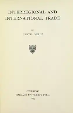 In 1933, Ohlin published Interregional and International Trade.[1][6][7][8] Ohlin built in it an economic theory of international trade from earlier work by Heckscher and his own doctoral thesis.[1] It is now known as the Heckscher–Ohlin model, one of the standard model economists use to debate trade theory.