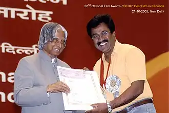 P. Sheshadri receiving the National Film Award for Best Feature Film in Kannada from President A. P. J. Abdul Kalam