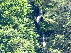 The falls is a long series of cascades beginning at Betsey's Rock, located near the headwaters of North Prong Lewis Fork in Wilkes County in North Carolina. The rock and falls were named for Betsey Pierce, a woman who lived there with her two children during the American Civil War growing and selling ginseng.[2]